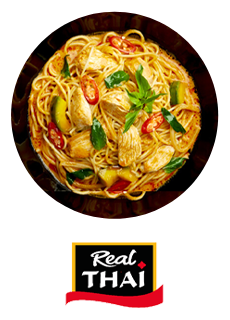 It is a popular dish in Thailand that combines with the flavor of Thai Red Curry and Italian Spaghetti.