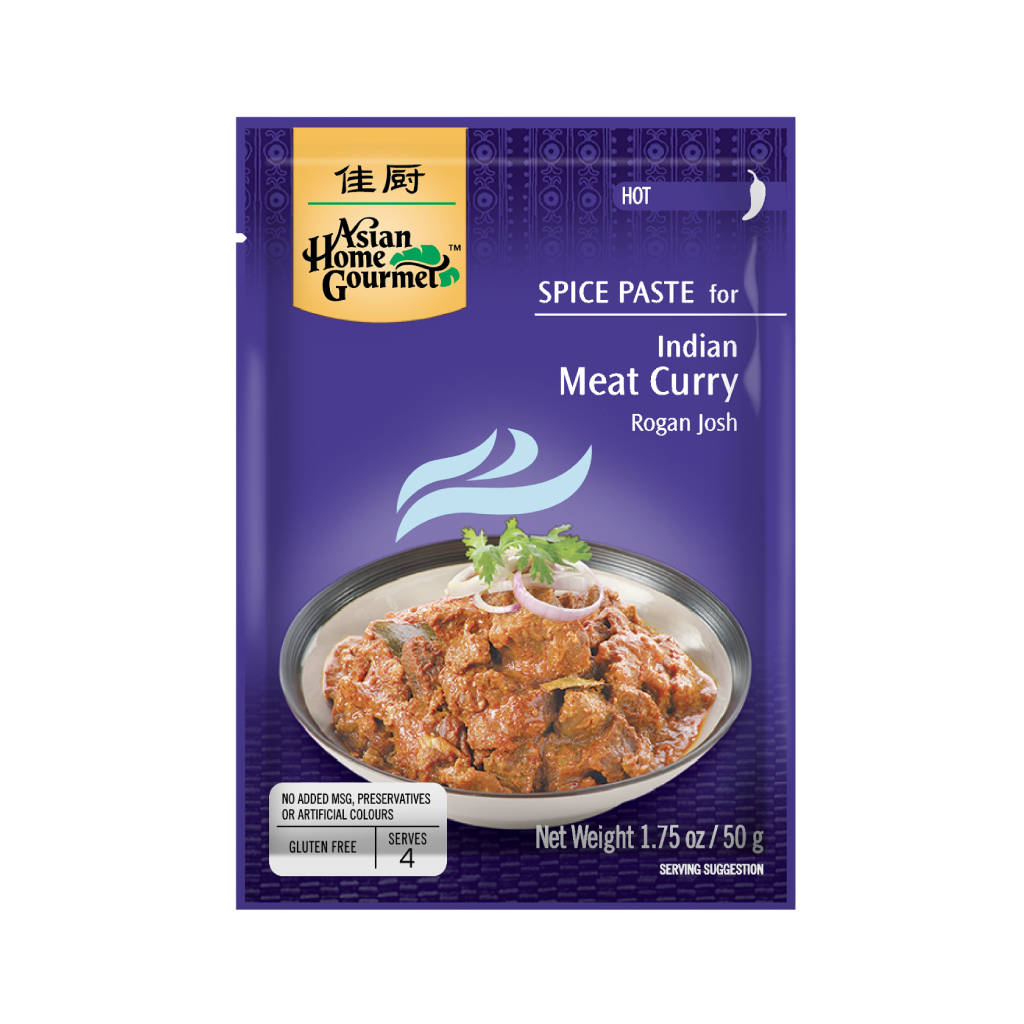 Asian Home Gourmet?s Indian Meat Curry, also known as Rogan Josh is one of the most famous dishes in Kashmiri cuisine and is rich in many aromatic spices. Most authentically made with lamb, this curry paste is also excellent with beef, goat or even turkey. For an authentic Indian experience, serve with biryani rice. Asian Home Gourmet pastes and mixes contain no flavor enhancers, preservatives or artificial colors. Available in 50g sachets.