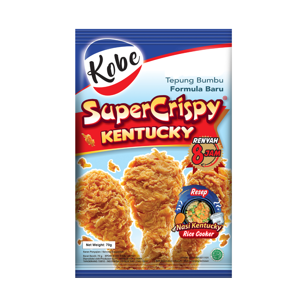 KOBE SuperCrispy is specially formulated to produce the crispest fried chicken! The taste is definitely delicious and just rightly seasoned. This breading contains delicious herbs that melt and flavor the chicken from inside out! Crispiness stays for up to 8 hours long, even when cool! Try out the KOBE SuperCrispy Breading and Enjoy! Available in 70g sachets.